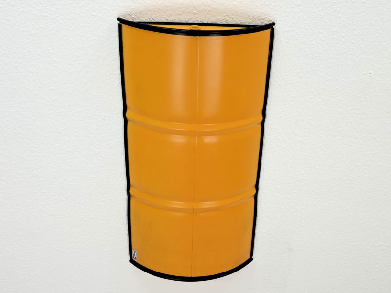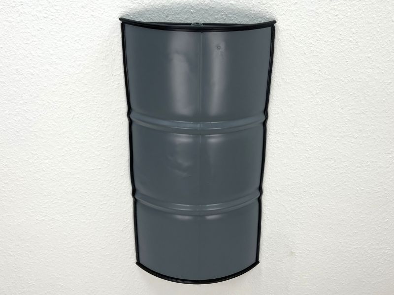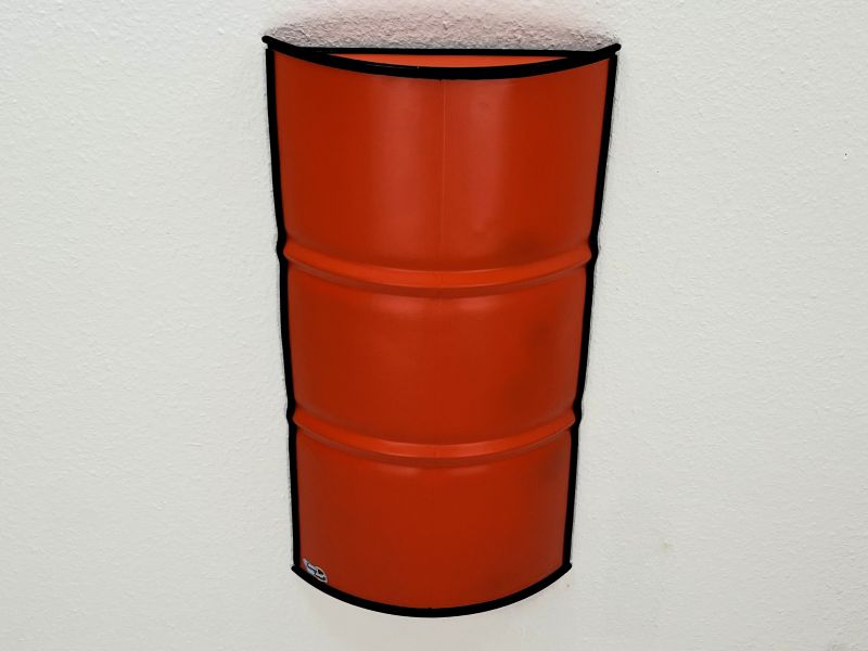 Dieses rechteckige Magnet Memoboard „Cut“ besteht aus dem Abschnitt eines 200 Liter Ölfasses. Die Fass-Längsseite wurde abgetrennt, sorgfältig bearbeitet und neu lackiert. So steht das 3D-Magnetboard von der Wand ab und es wirkt, als wäre das restliche Ölfass in der Wand verschwunden. Für den sichern Halt an der Wand wurde an der Rückseite der Magnettafel eine Wandaufhängung eingeschweißt und die Schnittkante ist mit einem schwarzen Kantenschutz bestückt. Diese 40 x 60cm große Ölfass Memoboard passt wunderbar in die Küche, ins Wohnzimmer oder ins Büro, macht sich aber auch ganz wunderbar im Kinder- oder Jugendzimmer. Auch eine ganze Wandgestaltung lässt sich damit umsetzen, wenn man mehrere dieser stylischen Ölfasstücke nebeneinander hängt. Magnete sind nicht im Lieferumfang enthalten.