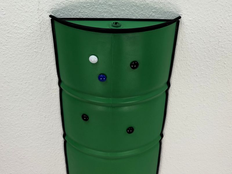 Hinweis: Wie alle Möbel von Tonnen Tumult ist auch das Magnetboard ein Upcycling-Produkte. Die Ölfässer wurden zuvor in der Industrie benutzt und dann von Hand modifiziert, um daraus ein Möbelstück zu machen. Trotz der neuen Lackierung sind einige kleine Dellen zu sehen. Diese kleinen Makel sind beabsichtigt und stehen für den Retro-Industrial-Stil!
